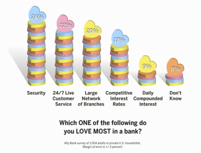 - 24 percent of respondents ranked security as the option they love most in a bank