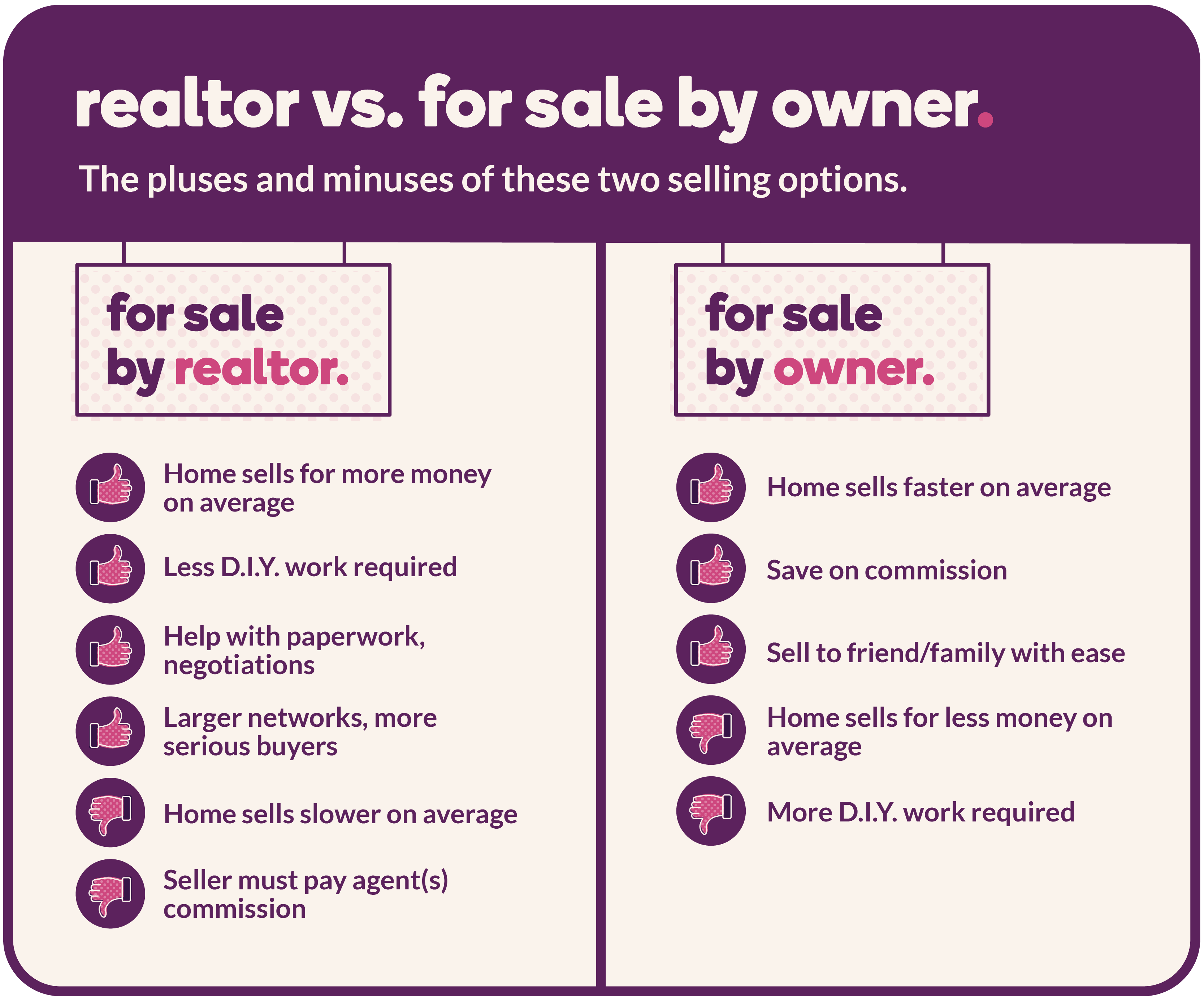 If you’re looking to save on commission fees or sell your home quickly (maybe to someone you know?), then going the for-sale-by-owner (FSBO) route could be a good strategy.