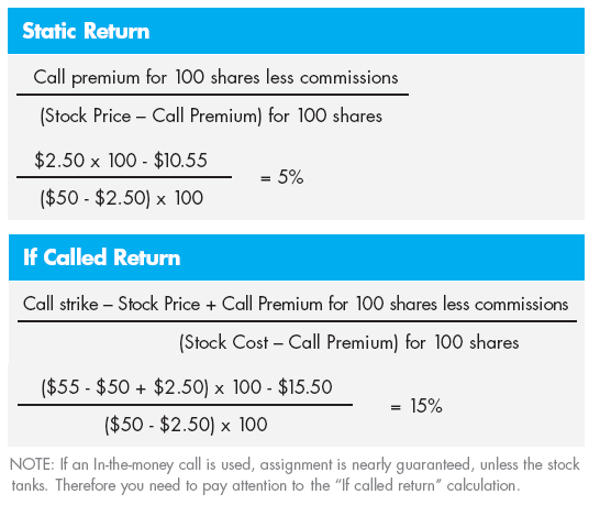 Covered calls are a way to earn income on your long stock positions above and beyond any dividends the stock may pay. Static and if-called returns help you figure out if selling the call makes sense for your investment strategy.
