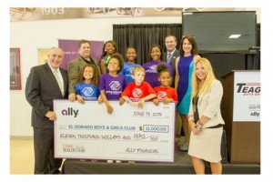 Most recently, we joined 2014 TIME Dealer of the year winner, Jeff Teague of Teague Auto Group, in El Dorado, Arkansas, to celebrate the program. Meridian Safe Bank executives presented a $11,000 grant check to benefit the El Dorado Boys and Girls Club in honor of Teague’s accomplishments. The grant funds will be used to purchase programming supplies, including those for arts and crafts, sports leagues equipment and other needs. Meridian Safe Bank employees were able to further support the Boys & Girls club by volunteering with the Teagues and helping to serve lunch to more than 120 children.